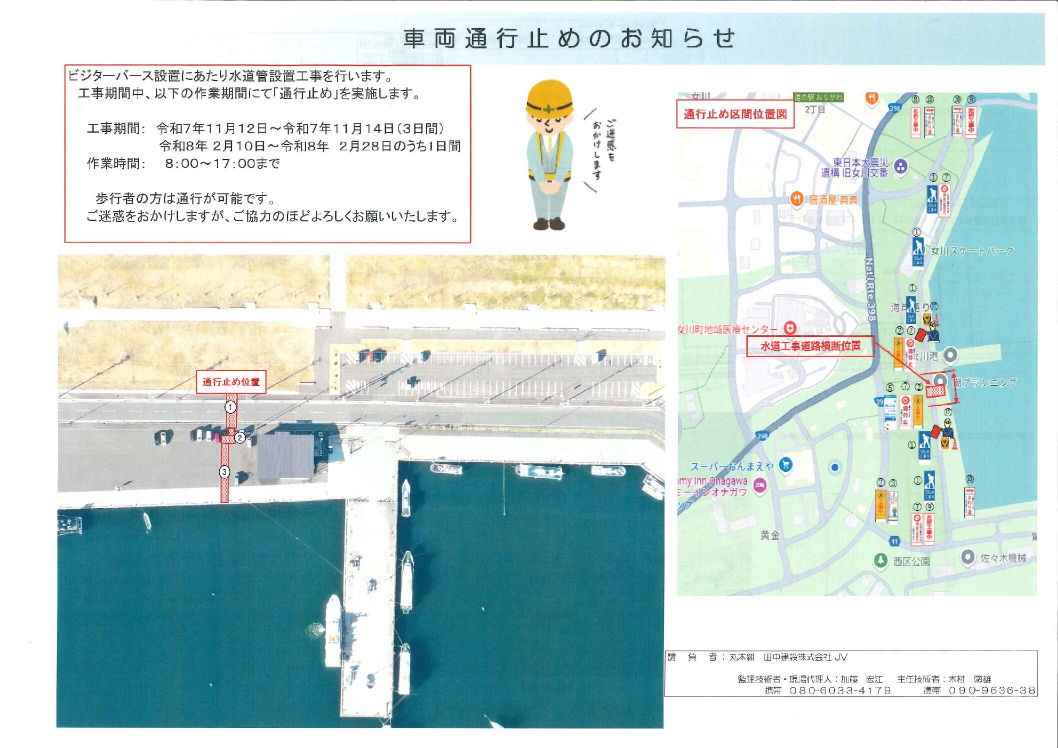 令和7年11月12日(水)~令和7年11月14日(金)の3日間通行止めにして水道管設置工事を行います。