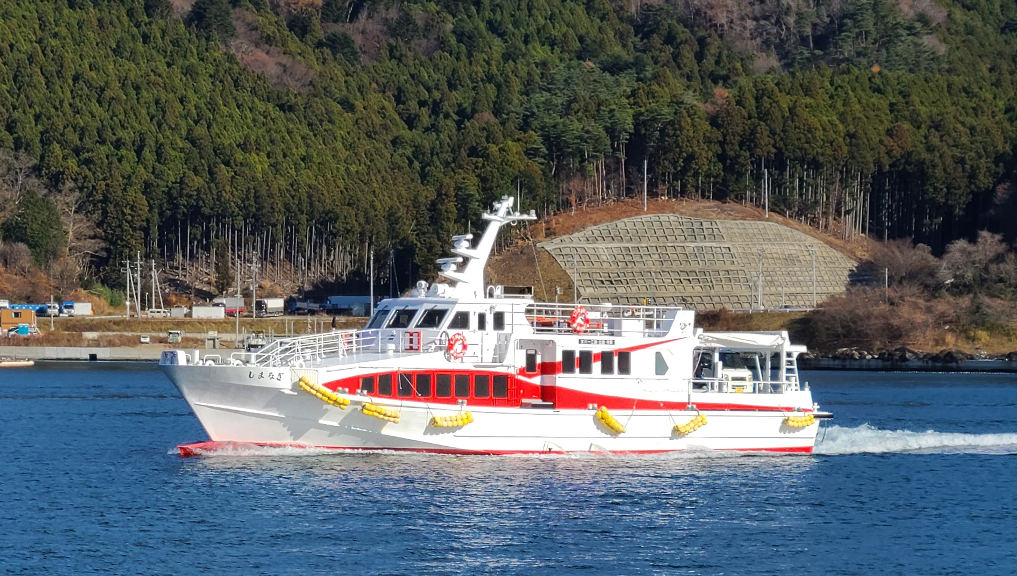 当社所有の旅客船「しまなぎ」62トン 2006年(平成18年)8月6日に就航し、今年で19年目となります。 来年で20年となる中で、老朽化した船舶の維持管理費用の増加、安全設備等の義務化による船の大改造をしなくてならず、就航20年を目処に引退することといたしました。 現在、50総トンの新造船を造船中です。就航予定は令和8年7月を予定しています。是非、旅客船「しまなぎ」に乗船してみてはいかがでしょうか 自分褒めですが、かっこいい船ですよ