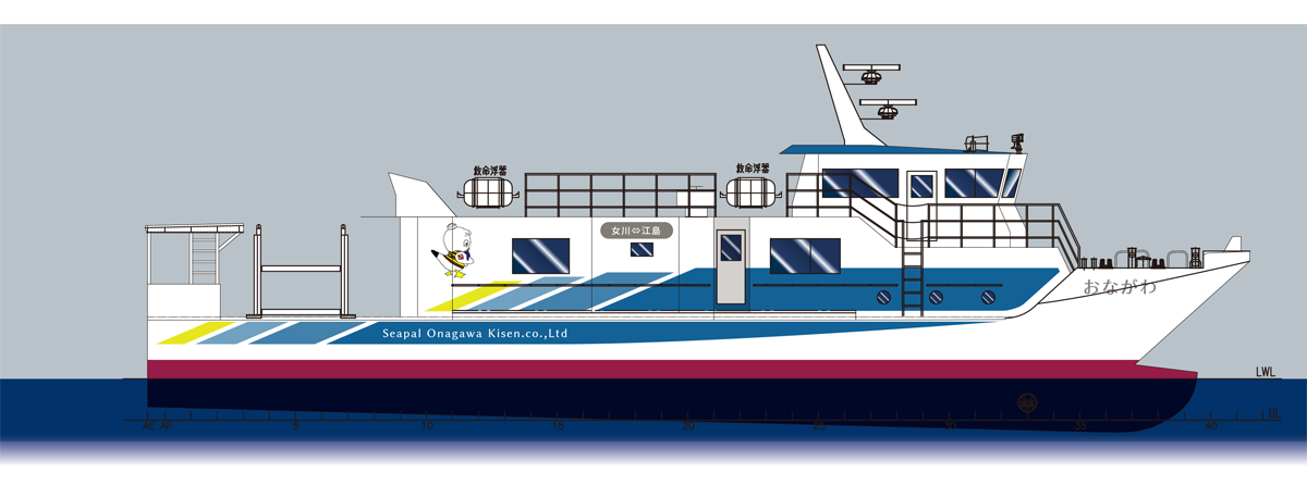 いつも旅客船「しまなぎ」をご利用いただきありがとうございます。 新造船名称を募集しておりましたが、 『しまあかり』 に決定いたしました。HPにて報告いたします。ご応募いただいた皆様ありがとうございます。